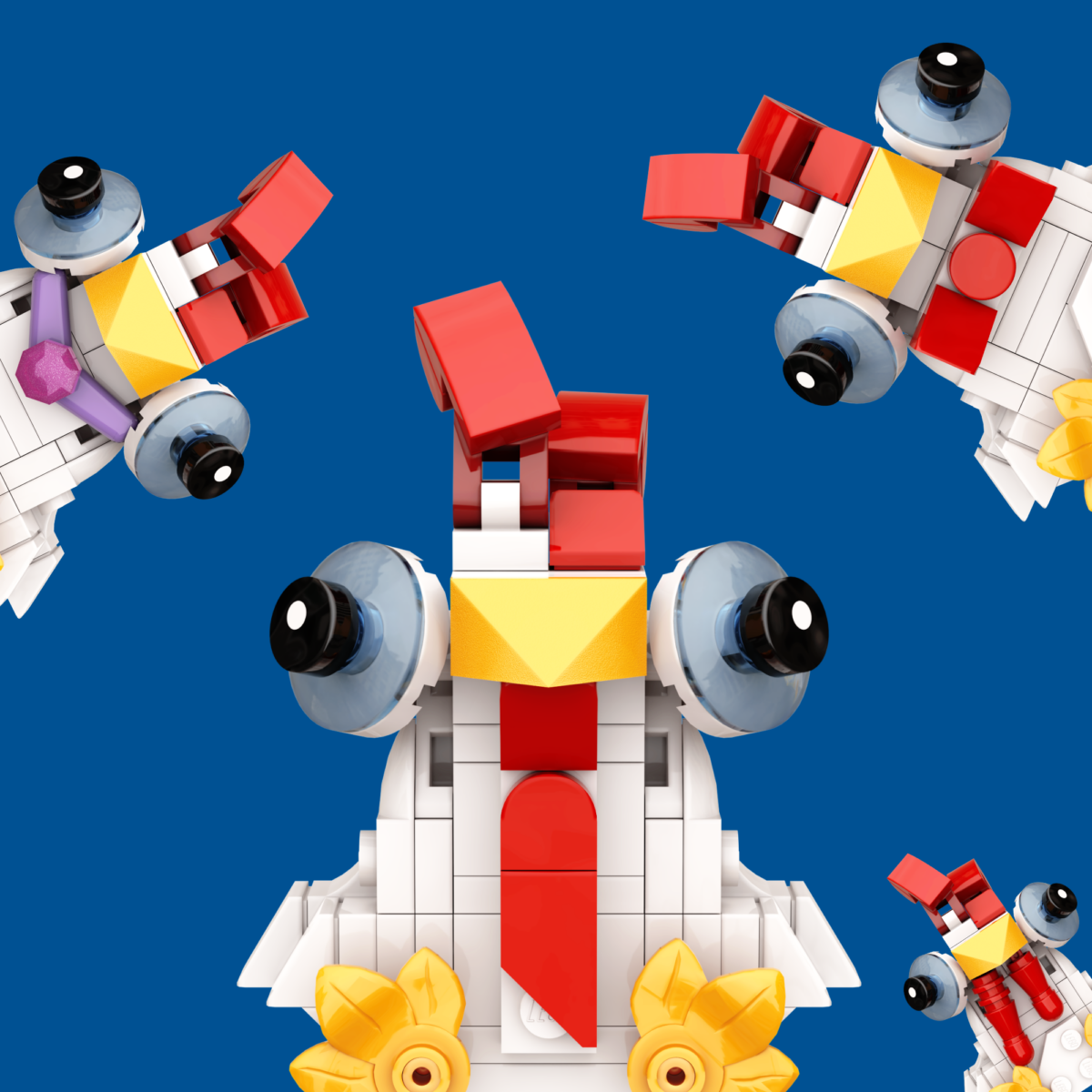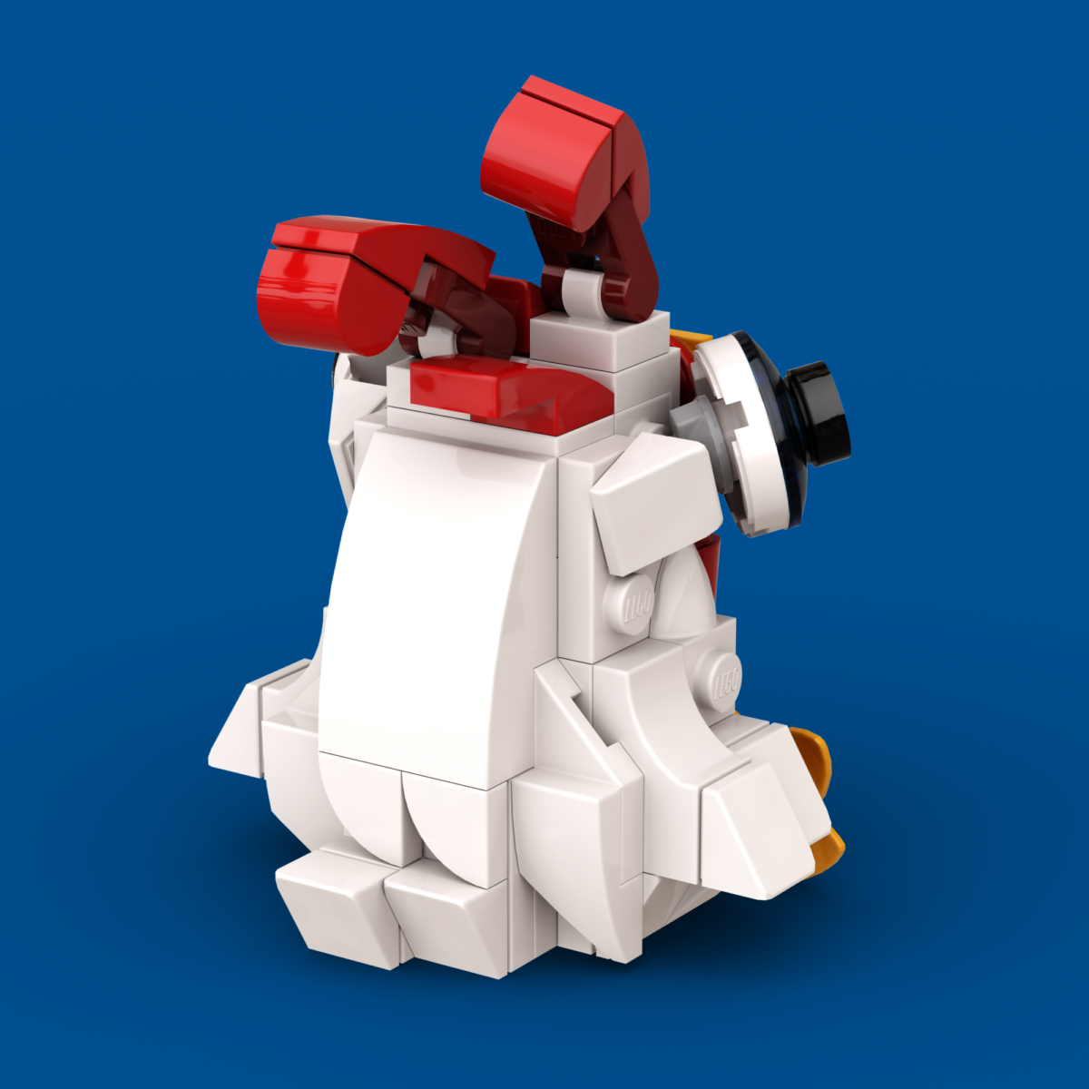 The Crazy-Eyed Chicken is highly recognizable due to its predominant bulging eyes which earned it its name. Their unique position and angle give this specie a wider view field than the average chicken, particularly in the front, making it extra alert of its surrounding and potential predators. Although optimal to avoid dangers, the view field offered by its eyes introduces a large blind spot near the ground right below its beak which can create issues when it comes to hunting – indeed, this specie can often be spotted with worms and other food sources safely passing by its feet, the chicken being completely unaware of their presence. It completely lacks hunting skills anyways, and it best kept as a pet… Native of LEGO farms, it can be found in all good AFOL collections.